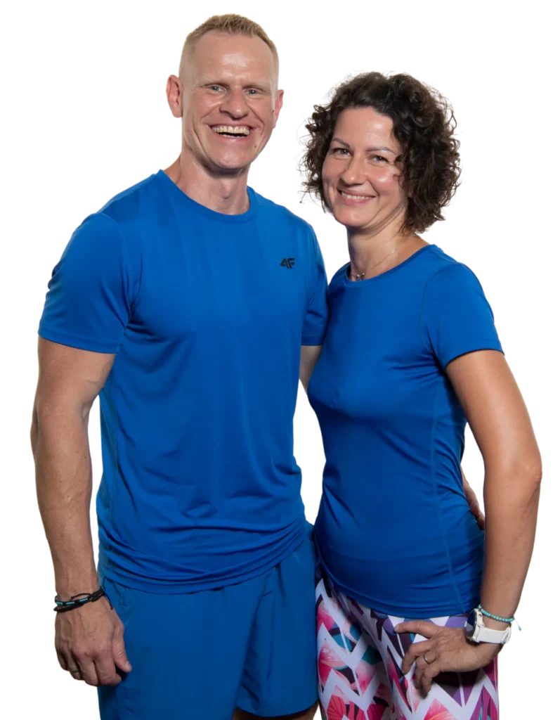 Cześć! Z tej strony Eliza Wielgosz-Bartoszek i Wojciech Bartoszek. Jesteśmy parą – w pracy i w życiu! – doświadczonych trenerów i fizjoterapeutów.